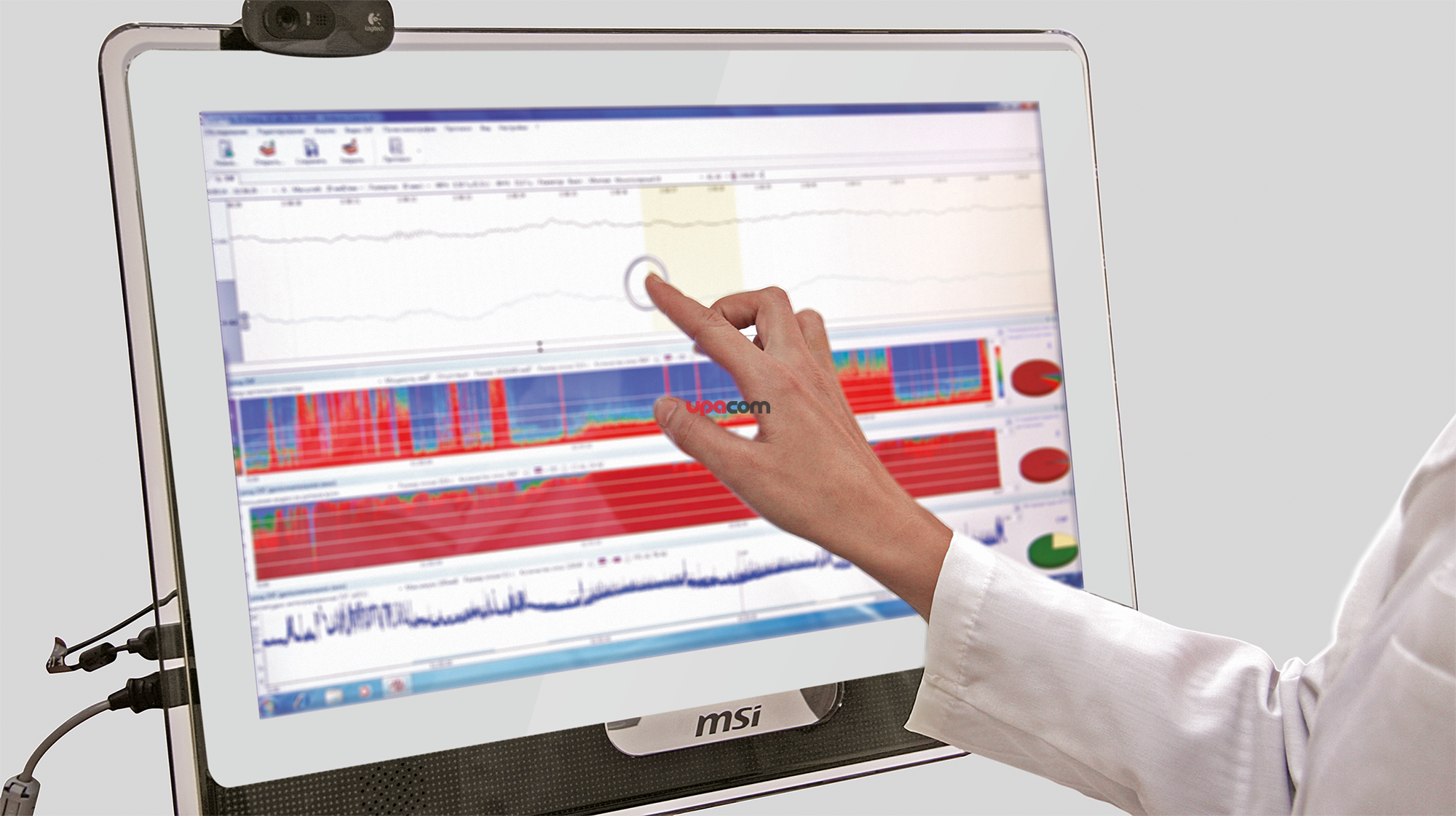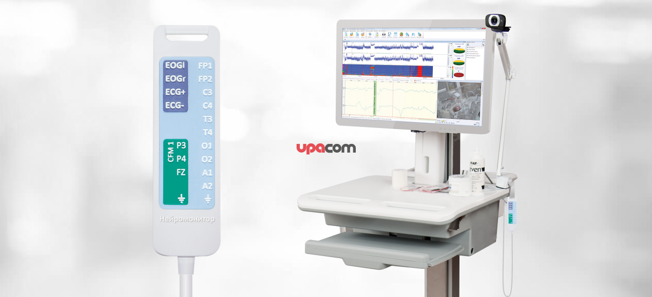 Нейромонитор церебральной функции с touchscreen-дисплеем на мобильной тележке
